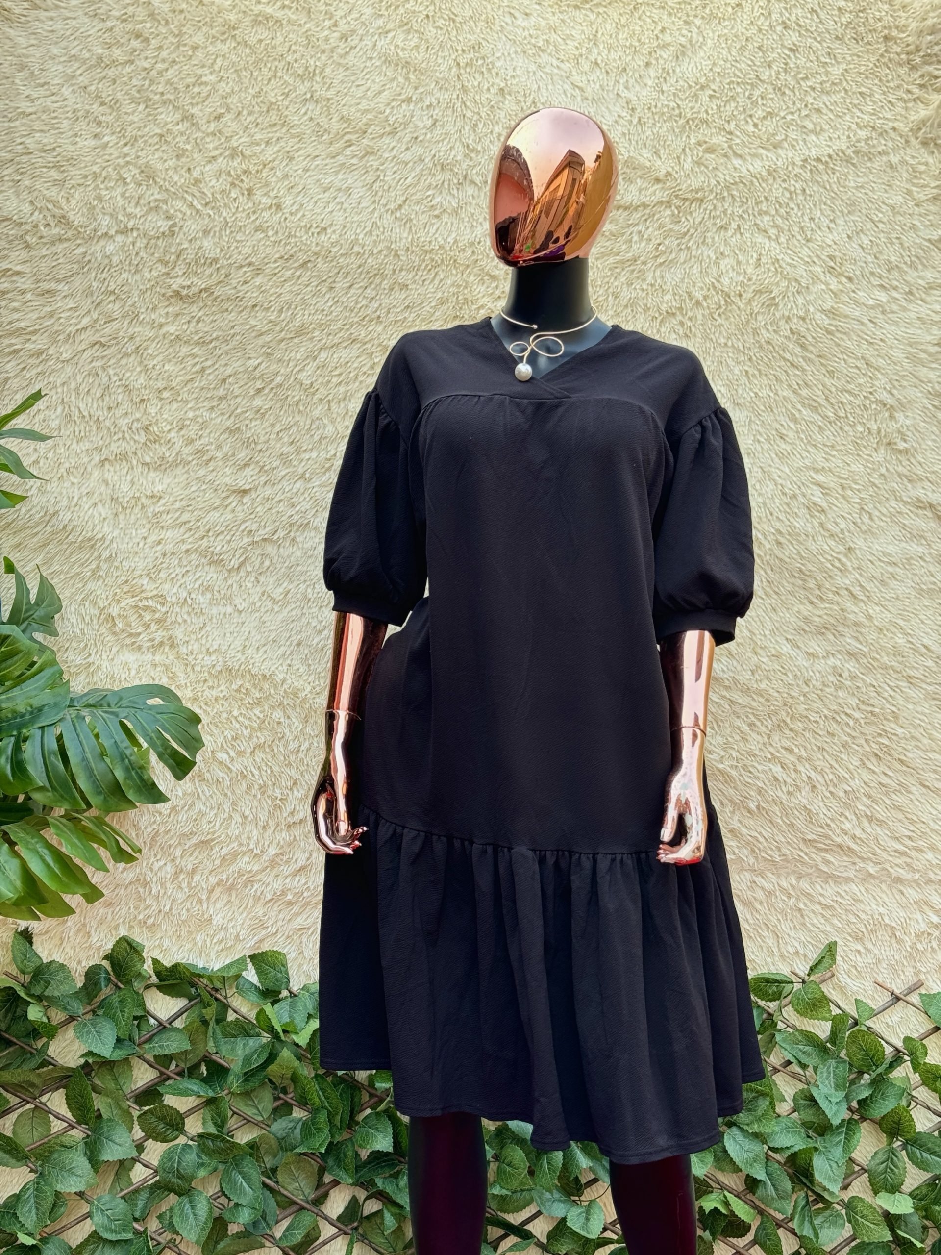 Black Ruffled Smock Dress
